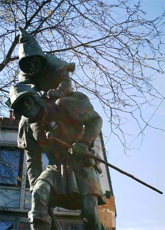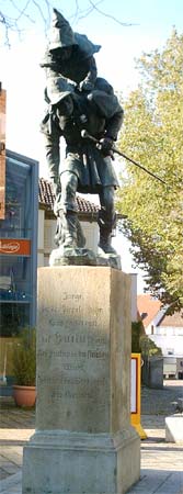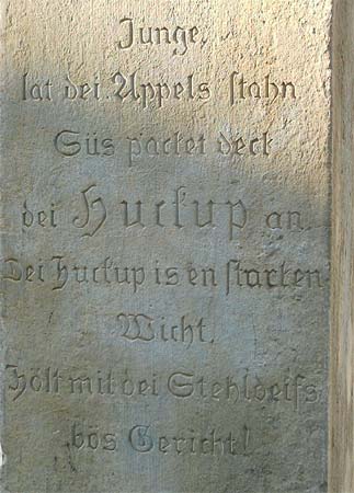 Eine Statue eines Aufhockers (Huckup) in Hildesheim (freundlicherweise von Andromalius zur Verfügung gestellt). Sie zeigt den Dämon auf dem Rücken eines Apfeldiebes sitzend.